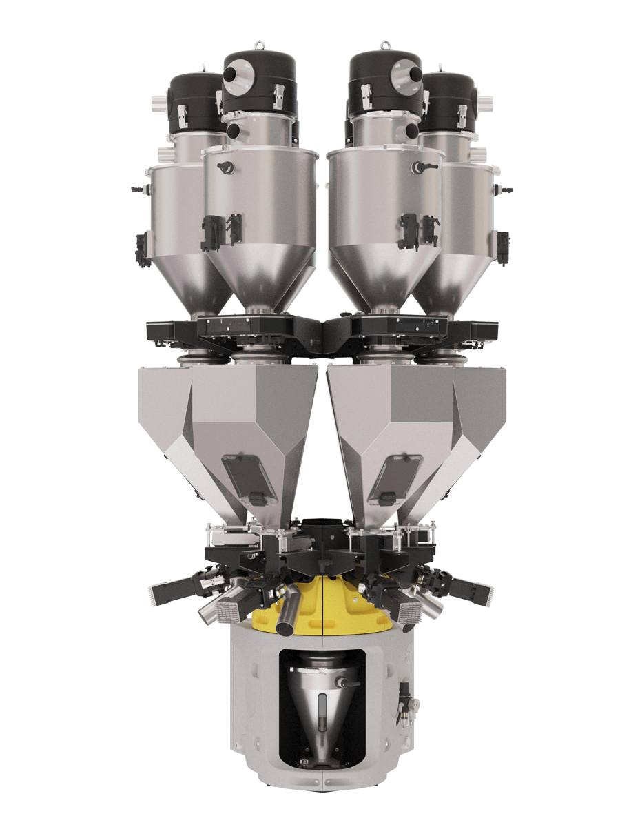 Dosatore gravimetrico batch con controllo di estrusione integrato Progettato per miscelare granuli di buona scorrevolezza nei processi in cui un dosaggio preciso e ripetibile e un’efficace miscelazione sono requisiti imprescindibili.