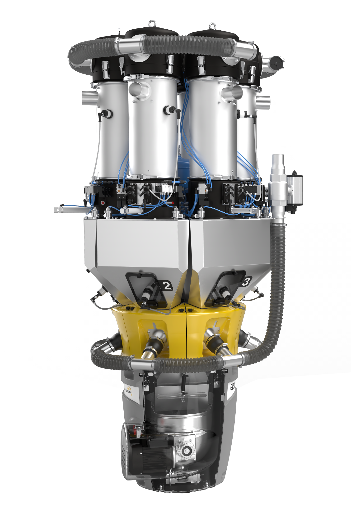 L’opzione doppio camino è indicata per processi di estrusione che richiedono elevate portate orarie.