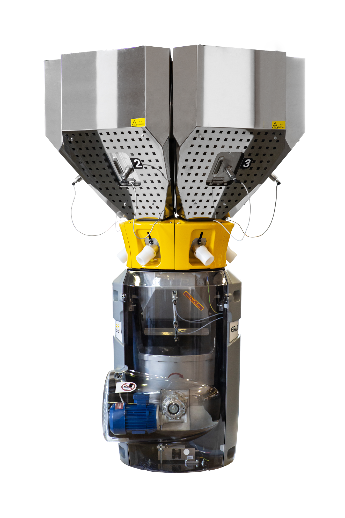 Le schermature sulle tramogge impediscono agli operatori di entrare accidentalmente in contatto con superfici calde.